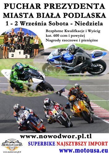Będzie to DWUDNIOWA IMPREZA 1-2 Września na Torze Superbike Biała Podlaska ul. łomaska 96!