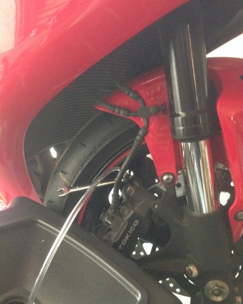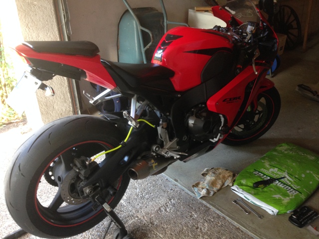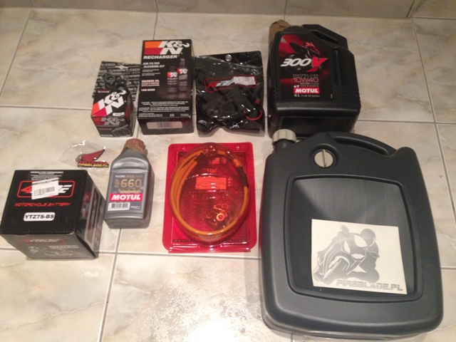 W końcu znalazłem chwile czasu i zabrałem się za przygotowanie moto do sezonu. Zrobiłem wszystko w pół dnia. Przy SC59 jeszcze nie grzebałem, a nieco się różni od SC28,33 czy 57b. Na szczęście na Fireblade.pl w dziale "garaż/modyfikacje" jest dużo ciekawych informacji Tytusa i innych użytkowników, beż których byłoby ciężko. Najpierw założyłem filtr powietrza, wymyty i nasączony K&N. I tu pierwszy mój błąd... Za bardzo go nasączyłem (chciałem dokładnie:)). Po odpaleniu moto, żeby rozgrzać olej do wymiany, kopcił parę minut jak stara WS'ka:) Ale minęło. Akumulator bez problemów wymieniony. Kolej na przewody. HEL dostarcza gotowy zestaw 3 przewodów do danego motocykla, niestety nie podaje który gdzie wsadzić... Krótkie przymiarki i poszło. nowe kable mają gumowe "otulinki" i 2 nowe daje w zestawie HEL. Tylko i aż bo wykorzystałem jedną. Ściągnąłem przy tyle stare otuliny i przyciąłem przy brzegach żeby ładnie wszystko wskoczyło w środek i na ciasno skręciłem. Jak na foto. Z przodem poszły dwie stare gumy, (nad półką), i przy lewym zacisku. Z prawej nowa gumowa obejma. Wymiana płynu, odpowietrzenie i wszystko hula jak powinno. Czas na olej. Najpierw nie mogłem ściągnąć pługa, ale kilka śrubek, delikatnie z każdej strony i wyskoczył z zaczepów przy owiewkach. Filtr oleju nie chciał puścić, więc kurs do sklepu po "przyrząd dla pań do odkręcania słoików" i poszło