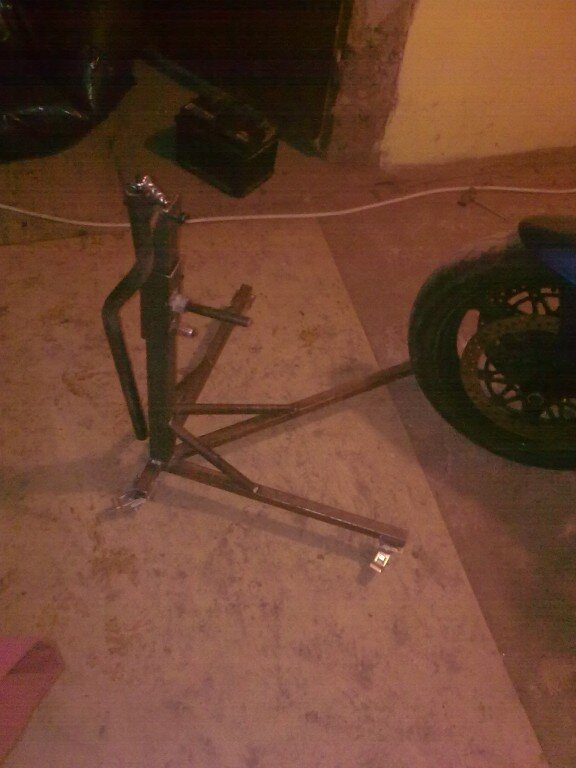 no gitara stojak zrobiony tylko jeszcze musze poszukać mocniejszych kółek bo yte nie wytrzymały moto jest nad ziemia około 13cm przednie koło ,niedługo filmik i fotki