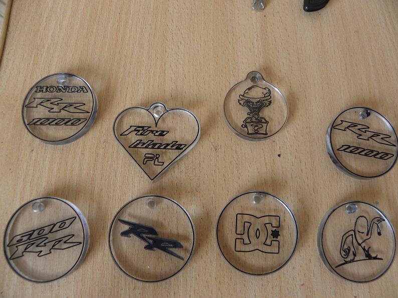 siema moge załatwic breloczki z plexy . Grubośc około 5-6mm. Grawerowane. Mozliwośc zrobienia dowolnego wzoru np z obrazka itp itd. Cena zależna od wielkości i od trudności wzoru. Tutaj mam pare zdjęć Breloczków . Fi około 40mm. Wiecej info na pw ;) zamówinie bedzie robione jak sie uzbiera min 10 breloków :P