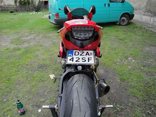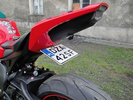 lipa27, a zrob fotke od tylu jak ona jest mocowana?? moze bardziej do przodu moto bys sobie ja zamocowal w strone amora i wtedy bys mial na tyle miejsca ze spokojnie byś sobie ją odgiał bez obawy ze zabiora dowod przez wygiecie ??