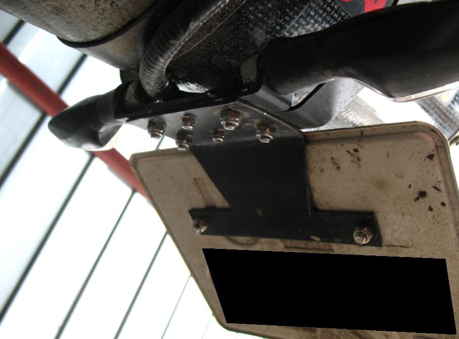 Samo mocowanie, bez podświetlania, składa się z 5 elementów z czego 4 zrobione są z płaskownika aluminiowego 25x2mm a jeden element (sam uchwyt tablicy) zrobiony z blachy stalowej (jak ktoś ma to lepsza będzie kwasówka albo alu). Wszystko jest ze sobą poskręcane śrubami i nakrętkami samokontrującymi z kwasówki. Można też połączyć wszystko nitami. Szkoda że nie zrobiłem zdjęć jak tworzyłem to mocowanie ale śpieszyłem się i nie pomyślałem o tym. Trochę zabawy z tym było żeby odpowiednio podoginać te płaskowniki alu i wszystko ładnie wykończyć ale przynajmniej wygląda to o wiele lepiej niż oryginalne mocowanie tablicy i to co miałem wcześniej