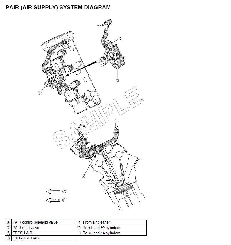 nie wiem jak w 1000rr bo nie grzebałem ale pewnie podobnie w gixie jest wężyk który zasysa powietrze z airboxa i poprzez zawór pair jest wpychane w głowice i w wydech nie mogę znaleźć jednego schematu ale tutaj cos takiego znalazłem, gdzie widac jak przepływ powietrza jest nad zaworem wydechowym więc nie ma opcji żeby się to powietrze dostało do komory spalania bo omija całkiem zawór ssący zobacz tutaj
