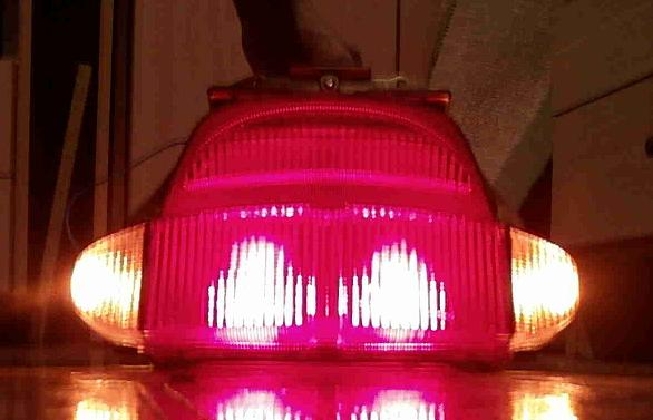 No i zrobiłem, zintegrowałem kierunkowskazy z lampą bez cięcia, wiercenia i kombinowania. Poczytałem trochę w internecie o podobnych przeróbkach w autach i wszystko sprowadza się do użycia mocnych diód LED. Jak wiadomo, mamy cały czerwony klosz w tylnej lampie, a chcemy mieć żółte kierunkowskazy żeby nie zwracać uwagi policji.