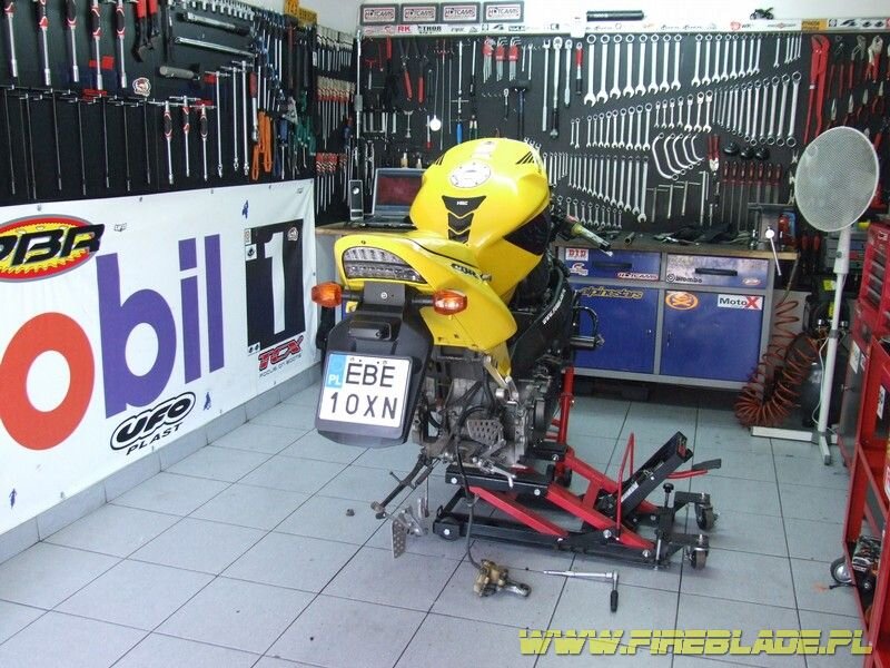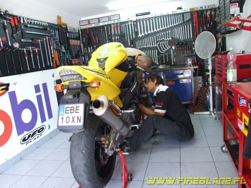 Witam. Ostatnio miałem przyjemność serwisować moto u naszego forumowego Guru od wszelkiej mechaniki. Wiem, że nie wszyscy mieli okazję poznać Czikena osobiście, więc pomyślałem, że fajnie będzie jak wrzucę kilka fotek. Muszę przyznać, że szczęka mi opadła jak Cziken otworzył drzwi do swojego serwisu, jeszcze nigdy nie widziałem tak dobrze wyposażonego warsztatu i tak idealnego porządku :ooo: Walczyliśmy z maszyną 2 dni właściwie to ja walczyłem z browarem i patrzyłem jak Cziken działa prawdziwe cuda z moją 954 on nie jest mechanikiem tylko wirtuozem mechaniki do tego bardzo sympatycznym człowiekiem z zajebistym poczuciem humoru. Jestem mega zadowolony z serwisu w "CZIKEN HELL'S GARAGE" :D cebra poprostu nie ta sama, wszystko śmiga jak ta lala, silniczek mruczy równiutko i przyjemnie. Mimo iż rozebraliśmy prawie całe moto nie ma żadnych niedociągnięć, wszystko jest tak jak być powinno. Jeśli macie coś do zrobienia przy swoich maszynkach to polecam wizytę u Czikena nawet nie ma się nad czym zastanawiać, macie pewność że naprawa moto będzie na najwyższym poziomie, części najlepszej jakości a za wszystko bardzo dobre ceny i przy okazji można sobie pogadać o moto i wszystkiego się dowiedzieć. Ja jeszcze chciałem bardzo podziękować Czikenowi, że znalazł dla mnie czas, za prace włożoną w moją cebre i za to, że musiał wysłuchiwać mojego marudzenia :P Cziken wielkie dzięki i serdeczne pozdro.