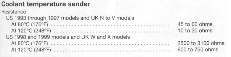 Gdyby ktoś szukał wartości rezystancji czujnika temperatury to podaje je tutaj. Dla 80°C jest to 45-60Ω, natomiast dla 120°C jest 10-20Ω.