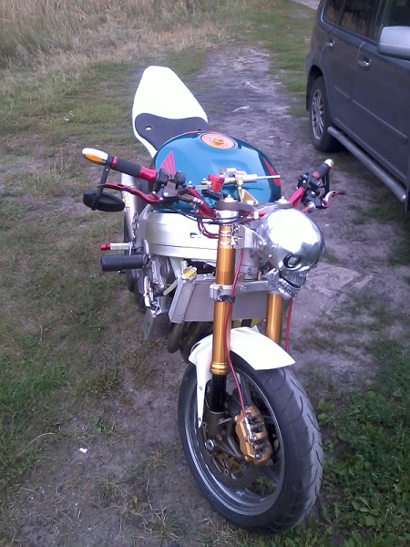 zrobiłem go do jazdy na koniec sezonu więc pojeździłem niedużo ale podoba mi się , jest mała masakra z tym amorem od ducata 848 zaj.... twardy jest musze go zmienić na coś innego, moto zupełnie się zmieniło przez te zawiechy, cheble też konkretne, trochę jest dłubania żeby wstawić ten wachacz, cały stelaż od nowa robiłem. Wsumie to na razie jest zrobiona tylko mechanika i nie do końca