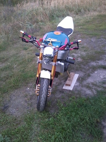 Też bym ten zawias załozył normalnie i jakąś lampe np z VRoda zamontował. Ta czaszka jakoś mi nie pasuje. Zawieszenie z Ducati robi robotę!