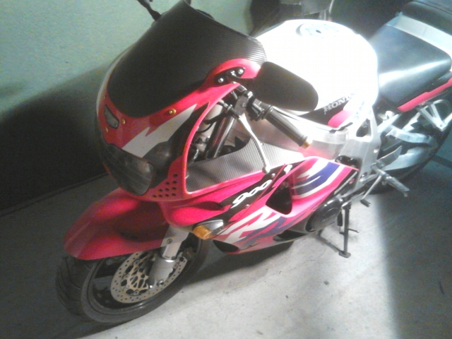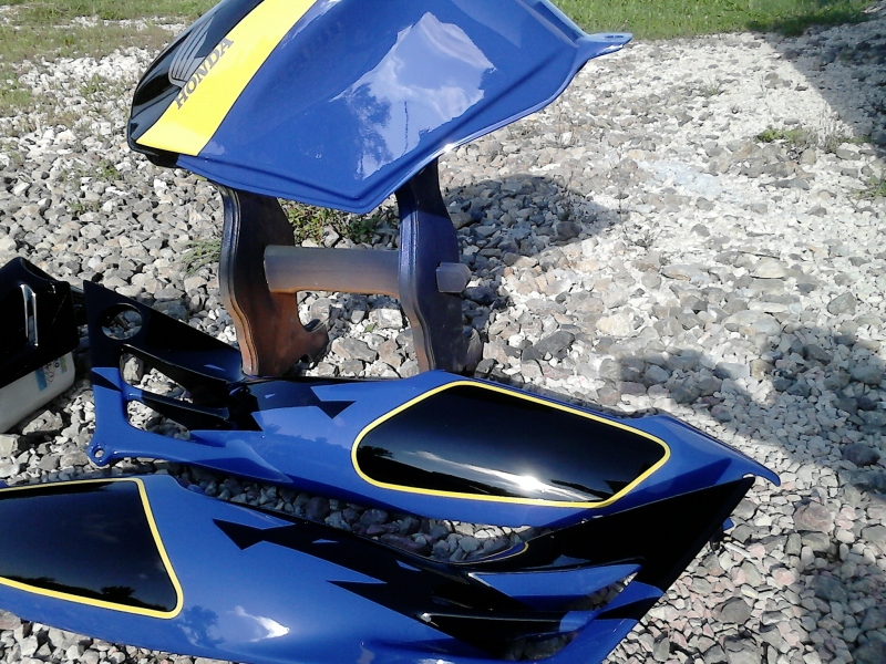 W lusterkach widać super, dotąd męczyłem i przymierzałem aż wyszło perfekcyjnie a specjalnie do tego celu kupiłem 2komplety lusterek. Pierwsze były od f4 ale były za szerokie i jakoś dziwnie było przez nie widać potem kupiłem te od 929 z i dorobiłem uchwyty z uszami pod odpowiednim kątem i wyszło super. Co do szyby to nie wiem co będę z nią robił bo na pewno nie chce przezroczystej. No robiłem kilka ciekawych projektów tylko musze poszukac fotki. Na hondzie którą pokazałem wyżej naklejką jest tylko skrzydełko na baku reszta jest robione lakierem. Wszystko niebieskie żółte i czarne było oklejane taśmą szparunek na zadupku i te wzorki z przodu zadupka też a to dla tego że klient nie mógł znaleźć naklejek do takiego typu lakierowania a jest to model lakierowania na produkcje USA.