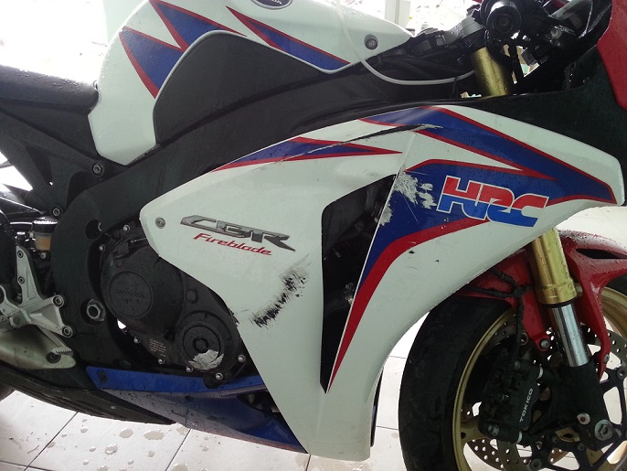 Coś jest nie tak z tą HRC, albo sprzedający ma coś do ukrycia bo nie wkleił zdjęcia prawej strony motocykla. Dekiel altka też mi się wydaje malowany. Więc leżała na 100% ale pytanie jak bardzo??