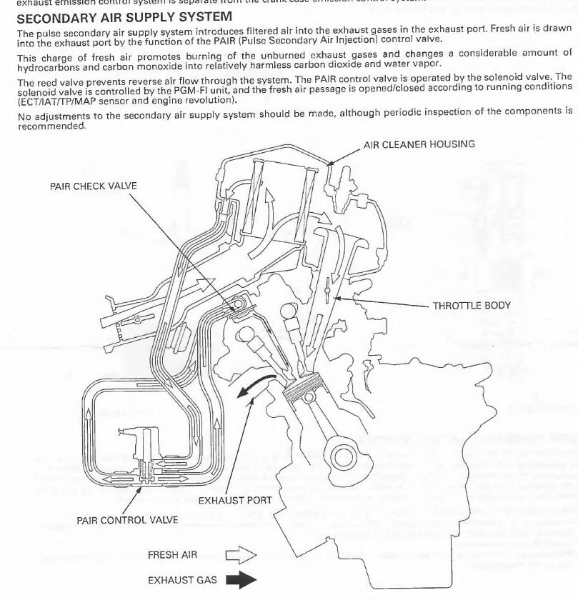 nie wiem jak w 1000rr bo nie grzebałem ale pewnie podobnie w gixie jest wężyk który zasysa powietrze z airboxa i poprzez zawór pair jest wpychane w głowice i w wydech nie mogę znaleźć jednego schematu ale tutaj cos takiego znalazłem, gdzie widac jak przepływ powietrza jest nad zaworem wydechowym więc nie ma opcji żeby się to powietrze dostało do komory spalania bo omija całkiem zawór ssący zobacz tutaj