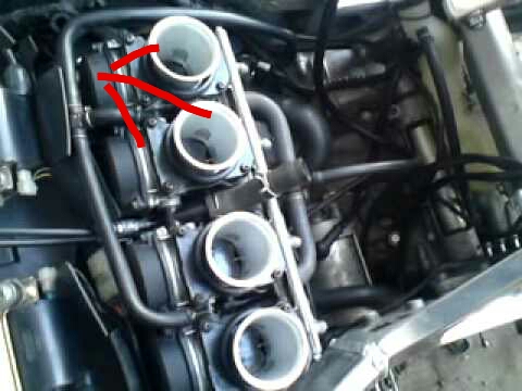 Przewód wychodzi od gaźników, do filtra nie ma żadnego wejścia:/ jest tak skierowany jakby mial gdzieś na dole być podłączony:/ jakby ktoś mial fotke swojej 900rr ze zdjętym bakiem to byłbym wdzięczny:l dzieki za odp :)to ten zaznaczony na foto