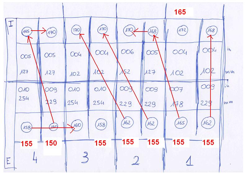 Zmień ssące pierwszego i czwartego cylindra. Resztę bym nie ruszał, i rozmiar płytek czwartego cylindra chyba zły wpisałeś?