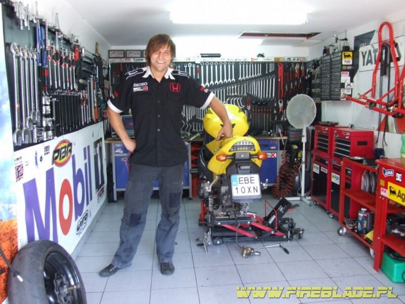 Witam. Ostatnio miałem przyjemność serwisować moto u naszego forumowego Guru od wszelkiej mechaniki. Wiem, że nie wszyscy mieli okazję poznać Czikena osobiście, więc pomyślałem, że fajnie będzie jak wrzucę kilka fotek. Muszę przyznać, że szczęka mi opadła jak Cziken otworzył drzwi do swojego serwisu, jeszcze nigdy nie widziałem tak dobrze wyposażonego warsztatu i tak idealnego porządku :ooo: Walczyliśmy z maszyną 2 dni właściwie to ja walczyłem z browarem i patrzyłem jak Cziken działa prawdziwe cuda z moją 954 on nie jest mechanikiem tylko wirtuozem mechaniki do tego bardzo sympatycznym człowiekiem z zajebistym poczuciem humoru. Jestem mega zadowolony z serwisu w "CZIKEN HELL'S GARAGE" :D cebra poprostu nie ta sama, wszystko śmiga jak ta lala, silniczek mruczy równiutko i przyjemnie. Mimo iż rozebraliśmy prawie całe moto nie ma żadnych niedociągnięć, wszystko jest tak jak być powinno. Jeśli macie coś do zrobienia przy swoich maszynkach to polecam wizytę u Czikena nawet nie ma się nad czym zastanawiać, macie pewność że naprawa moto będzie na najwyższym poziomie, części najlepszej jakości a za wszystko bardzo dobre ceny i przy okazji można sobie pogadać o moto i wszystkiego się dowiedzieć. Ja jeszcze chciałem bardzo podziękować Czikenowi, że znalazł dla mnie czas, za prace włożoną w moją cebre i za to, że musiał wysłuchiwać mojego marudzenia :P Cziken wielkie dzięki i serdeczne pozdro.