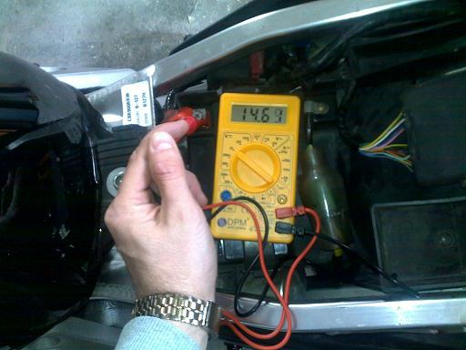 3. Odpal moto i sprawdź napięcie na akumulatorze winno być ok. 14 V (obroty 1,5-2 k/min.).
