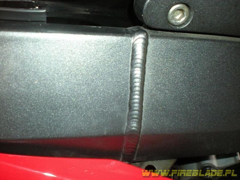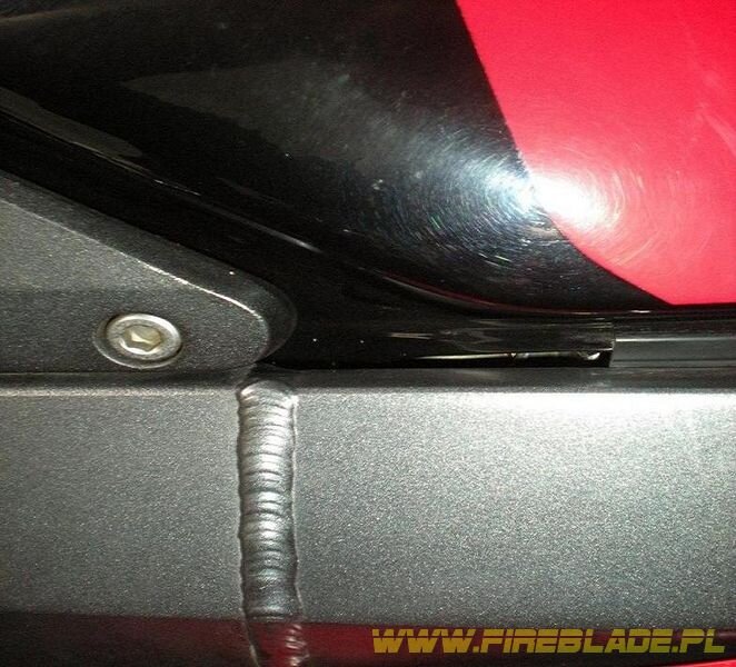 Dzieki, chlopaki. Porownywalem ten spaw z innymi 954 jak rowniez mialem okazje obejrzec go dokladnie gdy montowalem amortyzator skretu i podnosilem bak. Trzeba przyznac ze jest nieszczegolnie udany ale jednak oryginalny. Mysle ze zdazylbym znalezc juz inne slady bujnej przeszlosci motocykla gdyby rama byla spawana ;)