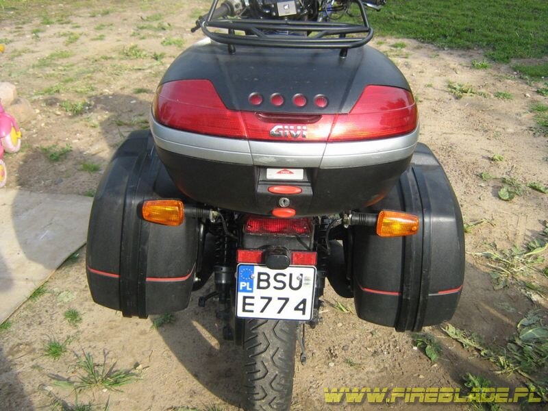 Dostałem moto i te 3 kufry , miałem je zamontować i pod takie mocowanie(płyta) kufra centralnego GIVI jak na fotach mogę zrobić stelaż, jest też możliwość zrobienia mocowań po bokach na dwie torby louisa,lub też zamiast kufra centralnego miejsce na 3 torbe louisa ale więcej info na temat terminów realizacji pisac na pw.