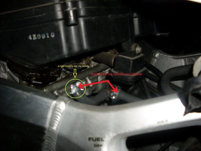 Panowie dziś postanowiłem sobie odpalić moją cbr i niestety niemiła niespodzianka mi się przytrafiła. Nie chciał odpalić, chyba zero paliwa w baku. Wyskoczyłem do CPN po paliwo i po wlaniu zacząłem odpalać i....zalał się , a po dłuższym kręceniu zaczęła nagle benzyna lecieć, rozebrałem owiewki, odkręciłem bak, i obejrzałem co się dzieje. jeszcze raz na ssaniu zakręciłem i moto odpalił, ale wyciek był ostry tam gdzie do gaźników dochodzi przewód. Pomyślałem że może przewód skrachciał, wymontowałem i sprawdziłem, przewody są ok, więc wymieniłem zaciski z tych drucików na normalne opaski zaciskowe skręcane, niestety nic to nie dało, paliwo nadal się leje, tak jak by coś się rozszczelniło przy tym wylociku z gaźników na który nakłada się przewód paliwowy.