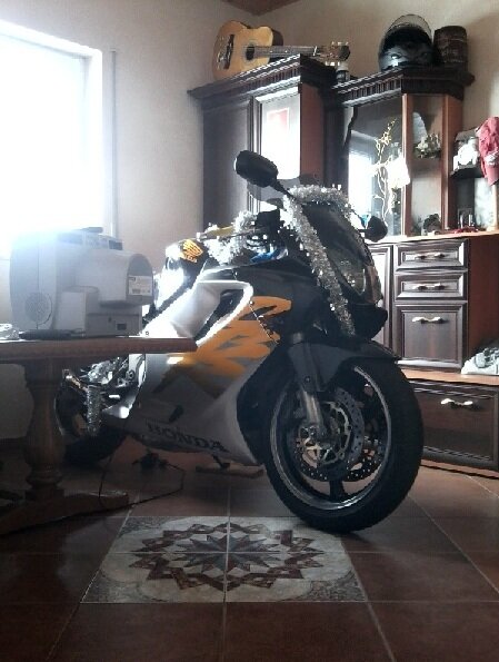 Motocykl najlepiej czuje się stojąc w ciepłym i suchym miejscu - chętnie kuchnia lub salon :)