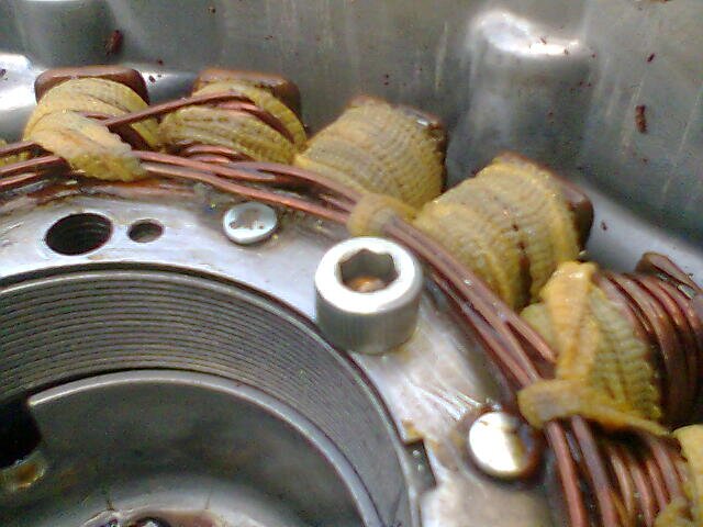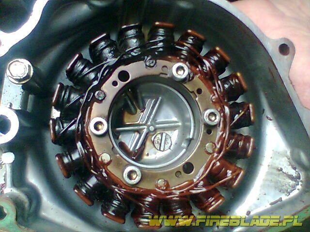 "Co do alternatora to tak jak ci pisalem zdejmujesz dekiel ten lewy od silnika nie schodzi latwo bo tam jest magnesowe kolo od alternatora ale wyjdzie napewno w deklu znajduje sie ta czesc (cewka Stator jak kto woli )przykrecona na 4 sruby tam jest nawiniety drut miedziany i wlasnie jego trza przewinac sam tego nie zrobisz bo trza miec pojecie troche o elektryce itd ale jakis fach man od alternatorow samochodowych powinien sobie z tym poradzic tak jak ci pisalem takizabiek we wrocku kosztowal mnie 120 zeta i terz smiga ze az milo "