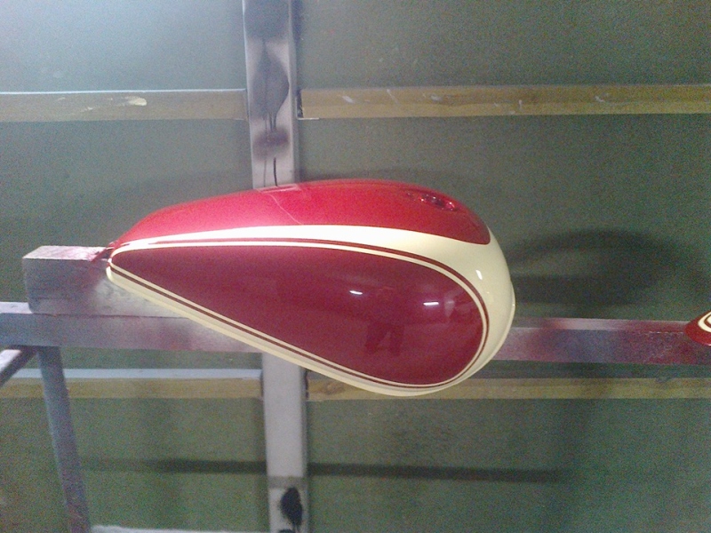 Tak właśnie u Małka. Miałem wżucić jakieś moje prace a w poniedziałek lakierowałem Kawasaaki Vulkan 1500 kolegi i to pokaże ale nie widać efektu bo już ciemno było. Zrobie fotki jak słońce wyjdzie. I na zdjęciu poniżej Niebieska MZ Trophy w moim wykonaniu też kolegi od Vulkana.
