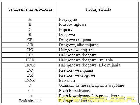 Na kloszach reflektorów i lamp tylnych znajdują się znormalizowane kombinacje liter i cyfr. Zawierają one ważne informacje o przeznaczeniu produktu oraz jego jakości. Oznaczenia te łatwo rozszyfrować, jeśli wiemy co poszczególne oznaczenia opisują.
